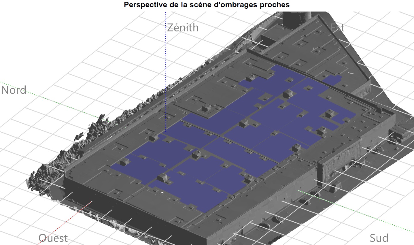 Prestation réalisée par Phoenix Energie : Phoenix Energie réalise les simulations de production, sous le logiciel PV-SYST, afin de quantifier le productible réel normal et évaluer les pertes de production dûes aux différents ombrages. L'environnement proche a été numérisé au format .3ds via une caméra-drone et intégré dans le calcul PV-SYST. Prestation terminée en 2026 |