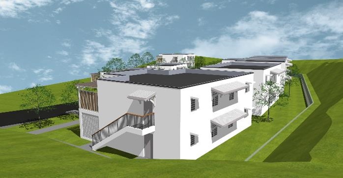 L'opération : Construction d'un bâtiment résidentiel collectif de 4 appartements situé aux Trois-Ilets en Martinique. Le bâtiment présente une surface utile totale de318.85 m² répartis sur 4 logements et 1 local d'activités. L'usage est l'habitation. Il dispose de 3 niveaux, à savoir le RdC (1 logement + 1 local d'activités), le RdJ (1 logement) et le R+1 (2 logements). Coût de l'opération : 650 000 €